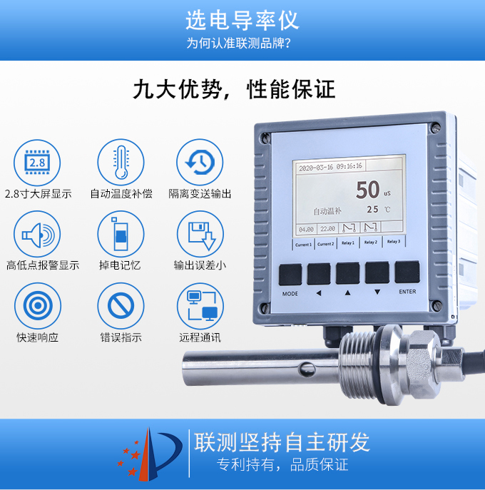 SIN-EC8.0工業電導率儀表,大屏顯示,可對各種工業用水的電導率(TDS)值進行連續測量和控制,本裝置廣泛應用于科學實驗裝備、化工、制藥、環保、冶金、造紙、食品、飲料及供水等行業。根據水工業的環境和特點結合國際供電標準,考慮了特殊環境的電氣設計規范,增加了220VAC供電。